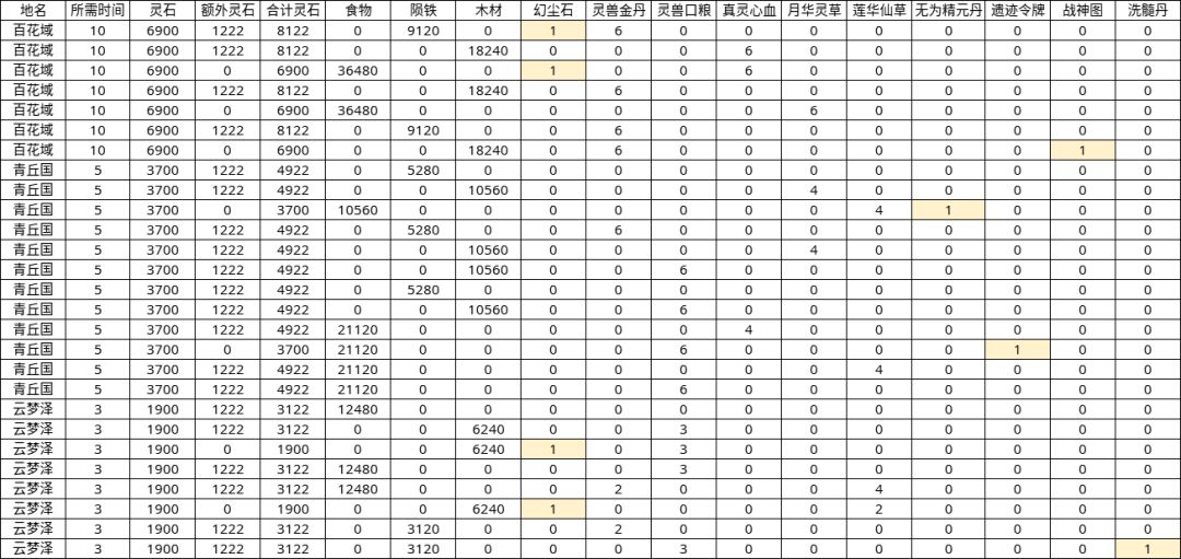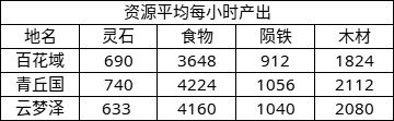 3、从资源平均每小时产出来讲,选青丘国。云游次数每天4次,所以算好时间白天3次青丘国,晚上睡觉1次百花域,不过中间肯定会出现时间满足不了的情况那就来一次云梦泽。
