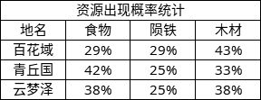 2、从资源出现的概率来讲,系统设定应该都是33%,毕竟我的样本有点少可能出现点误差也可能大概率就是这样。