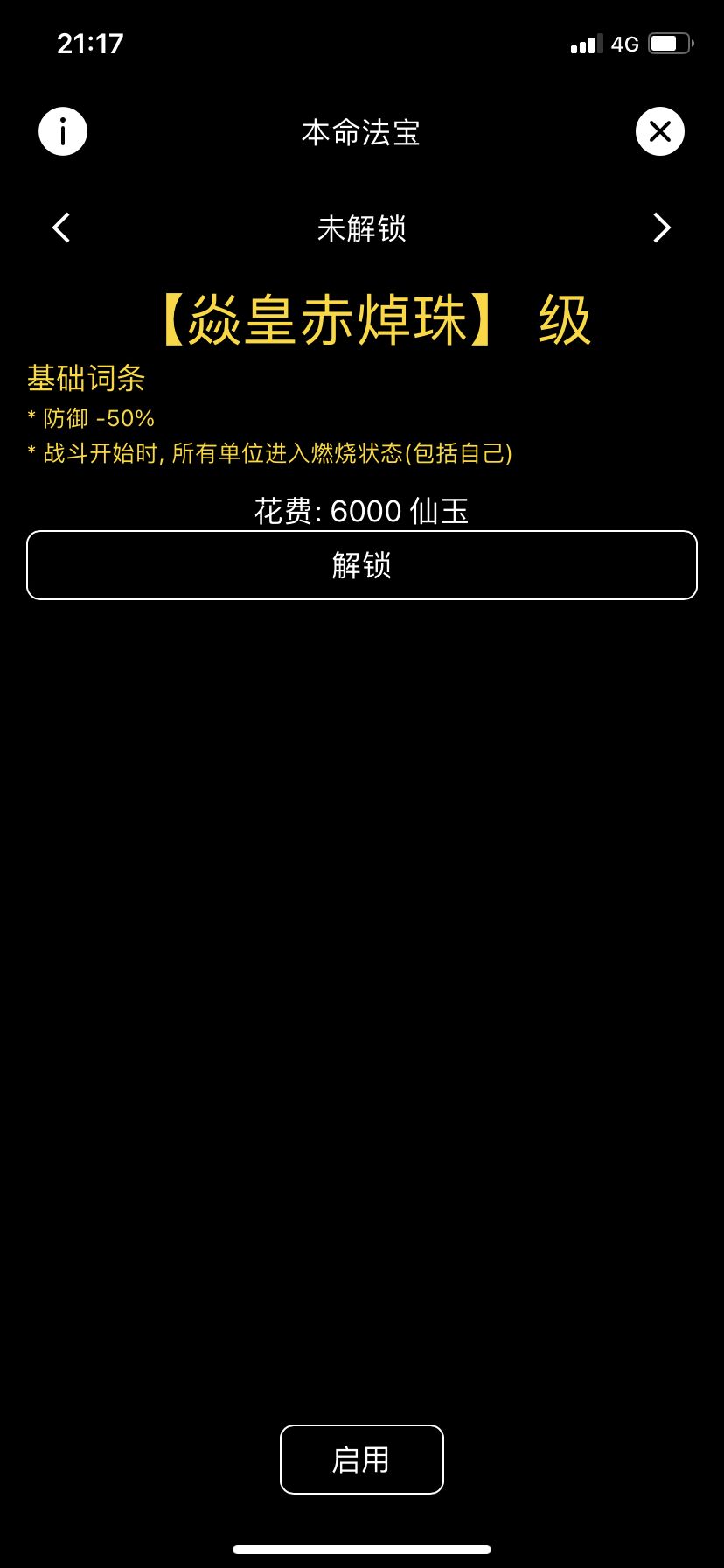 焱皇赤焯珠基础词条:防御-50% 战斗开始时,所有单位进入燃烧包括自己