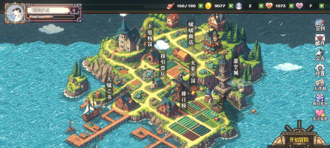 选择方向2爬塔,通关第二章,解锁悬空城后,便能进行爬塔,每日两次扫荡,尽可能爬更高的层数再进行扫荡,扫荡的资源于层数有关。