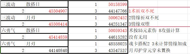 选择六勇气时,月刃和散搭日相差较大,选择散搭日(此处即一环日二环月三环日)