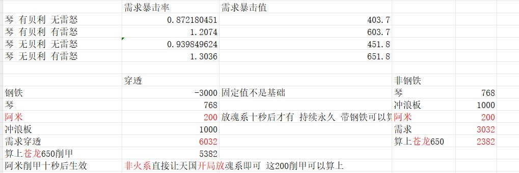 计算时未考虑将月刃的护穿元穿置换,所以表中的月刃数据都是可以再提升1%左右