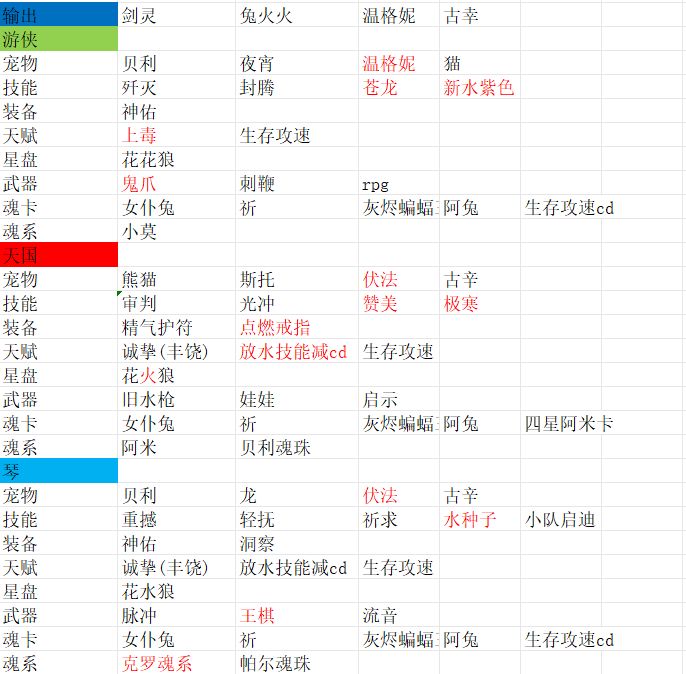 剑灵、古辛、温格妮建议输出自己带上,满星时,剑灵有240元穿加成,古辛额外36水属伤,温格妮主属性有攻强