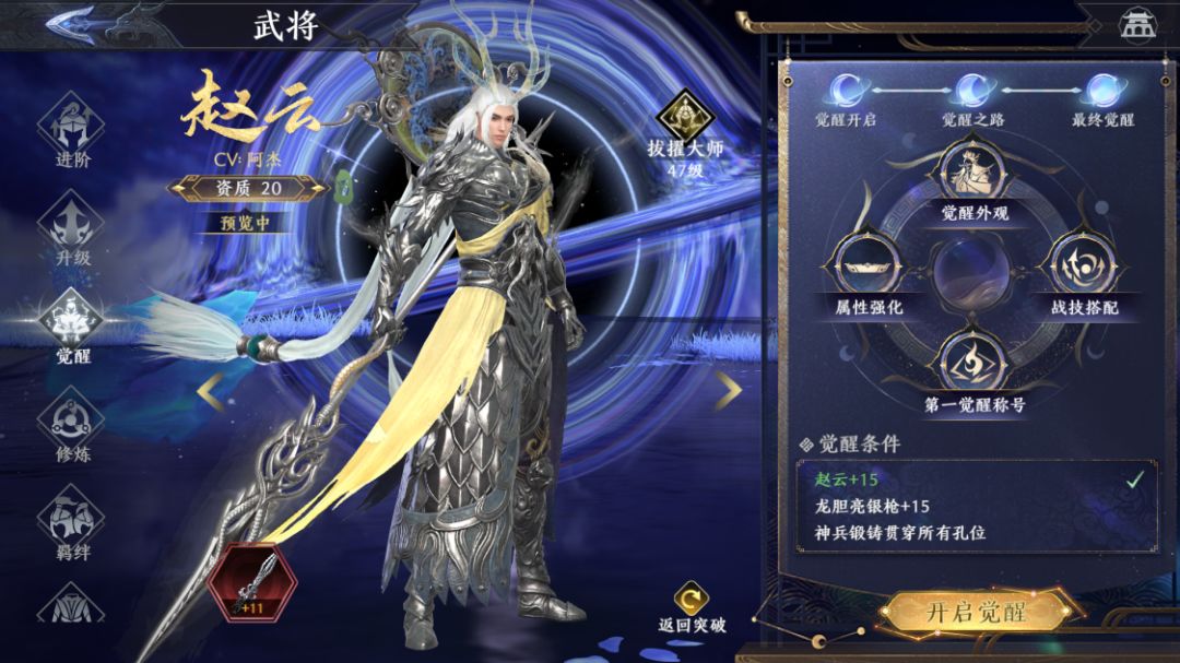 最最关键的是,在赵云突破+15,神兵突破+15,神兵锻铸全部完成之后,还可以通过觉醒活动,将赵云升级为22资质的彩金武将,这么一个帅气又强力的武将,还可以通过白嫖升至最高,谁又能不心动呢?