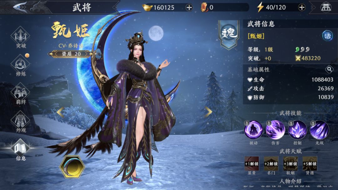 甄姬则是作为一个法师英雄,有着超强的控制能力,可以大范围的冰冻对手,并造成不俗的伤害,实为国战的一大利器,推荐程度★★★★★