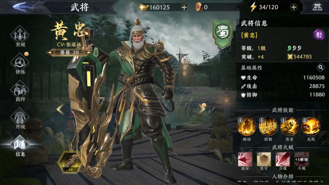 黄忠可以通过势力店铺获取武将碎片、神兵碎片以及神兵铸图。