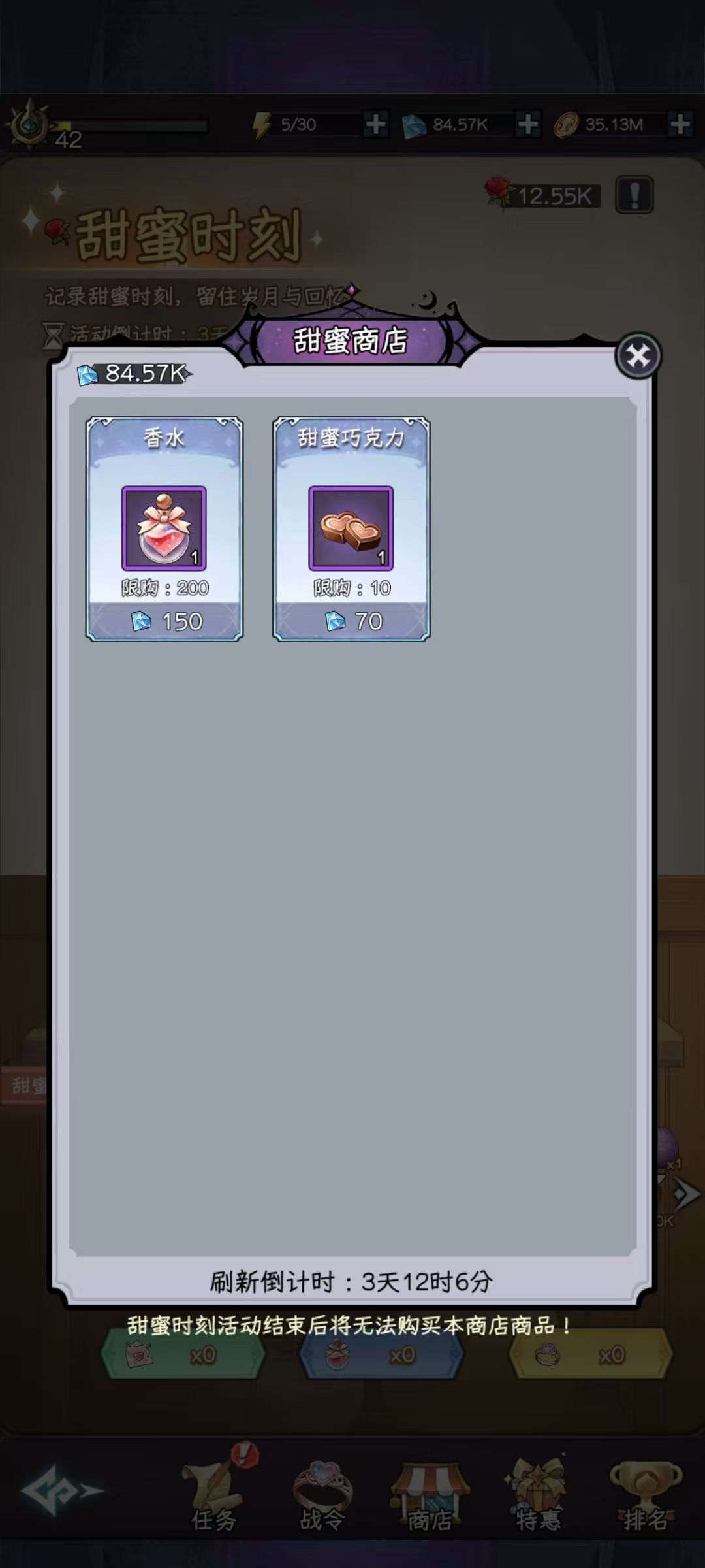 甜蜜商店里也可以买十个巧克力总计产出约650朵玫瑰花。