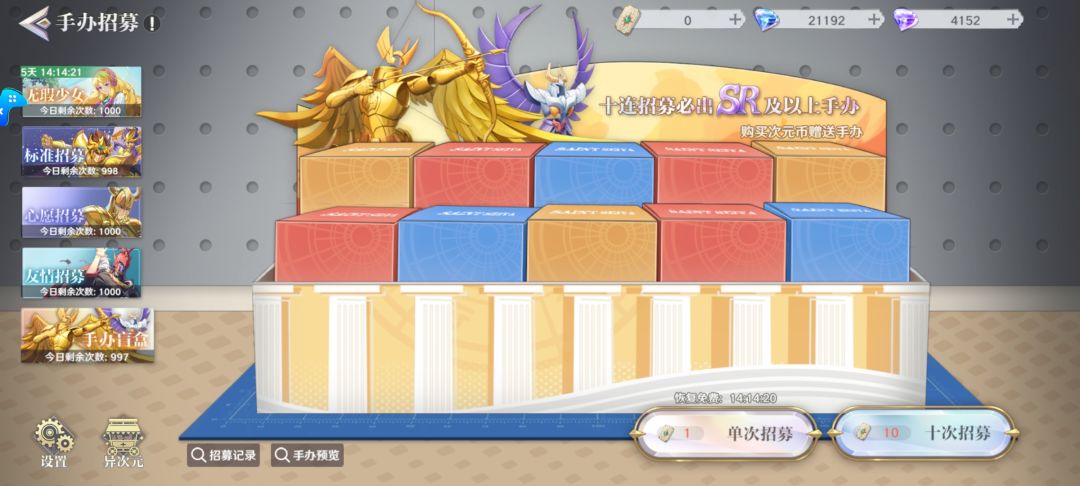 第5个卡池是手办卡池,就是收集各位斗士的圣衣,可以加属性和战力,不推荐投入太多资源,氪佬随意。