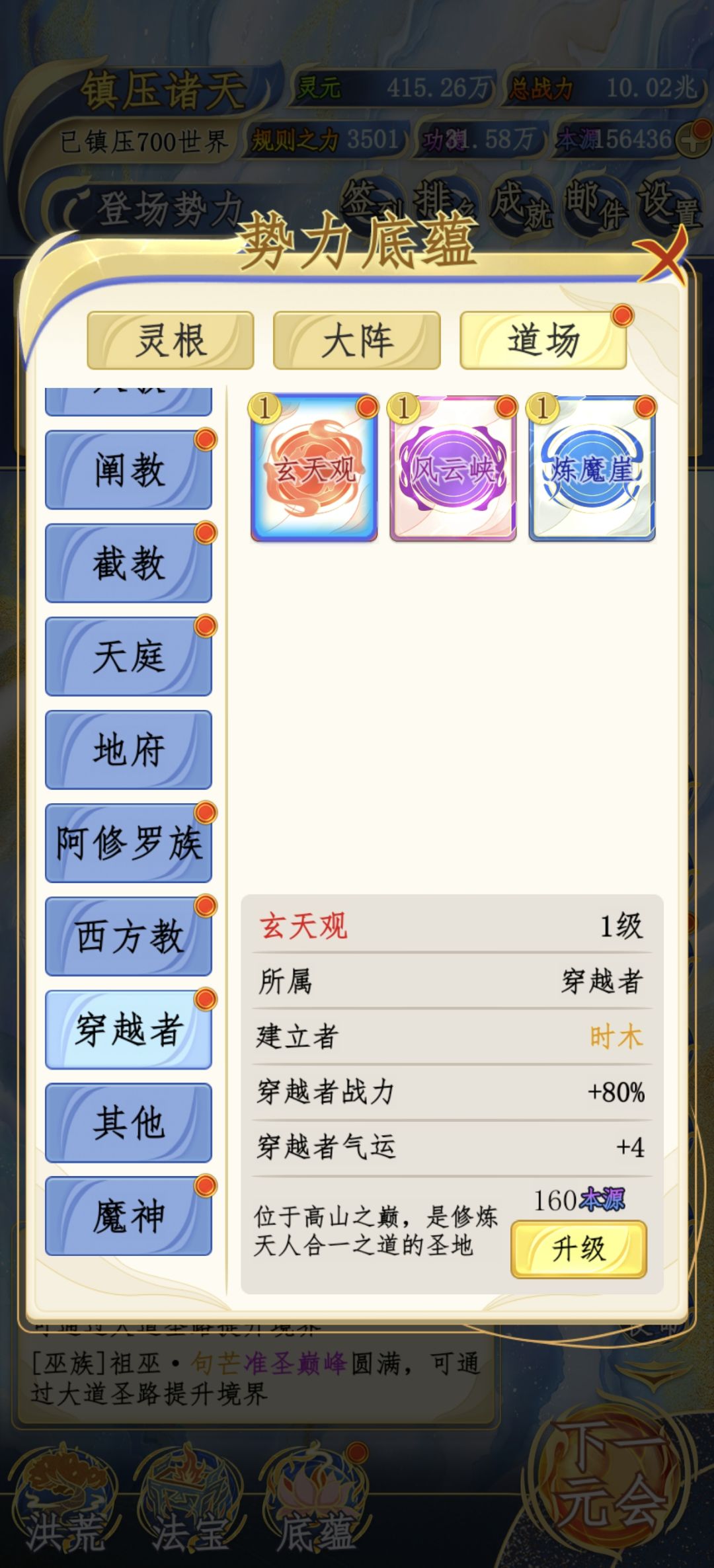 目前穿越者和魔神两个势力有了道场,但还没有阵法,也许还有完善的空间。但穿越者的金手指buff加成可怕,着实是异军突起哈。
