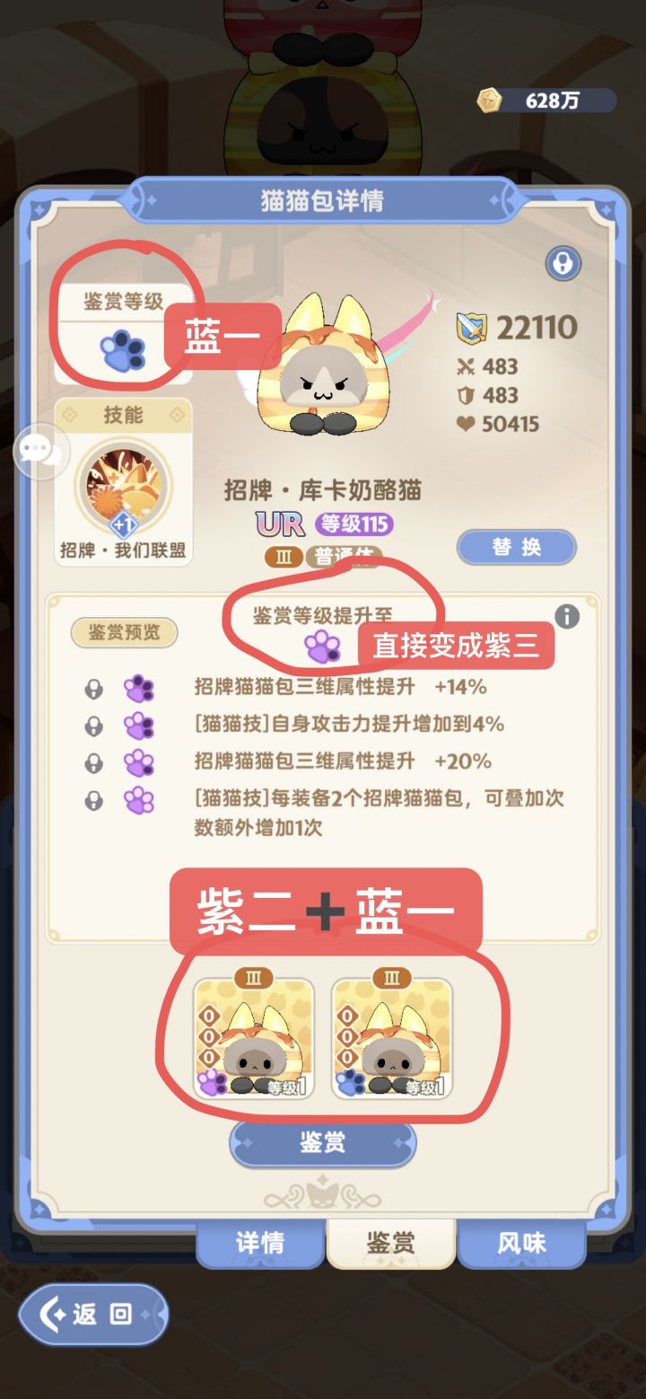 猫猫包鉴赏不会损耗猫猫,如图所示,你碰到好的猫猫包了,直接用原先高鉴赏等级的来鉴赏即可,不会有任何损耗。看图片一目了然哦!