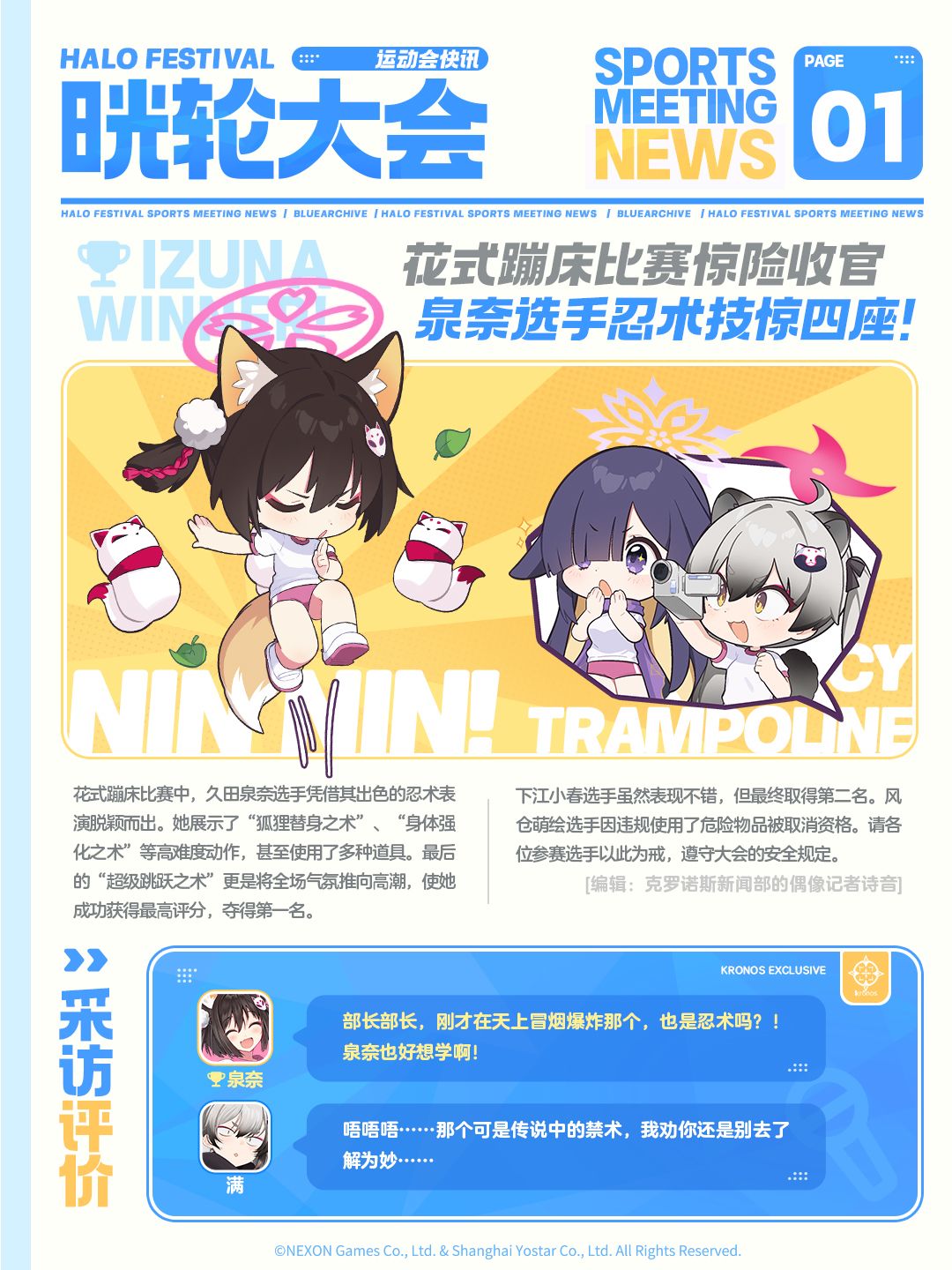 在花式蹦床比赛中脱颖而出的,是来自百鬼夜行忍术研究部的泉奈选手!她不仅能够熟练地完成蹦床动作,还能在空中施展精彩的忍术,真是令人叹为观止!