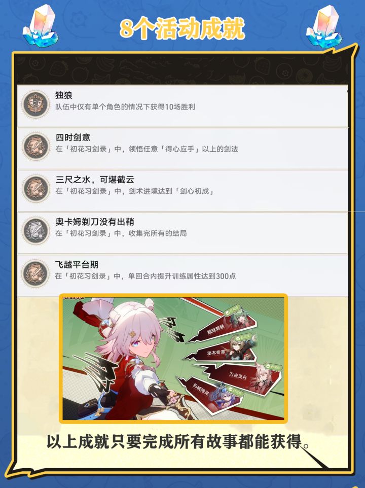 初花习剑录中大部分成就在完成所有故事的过程中就能获得。只有个别需要特别条件达成。