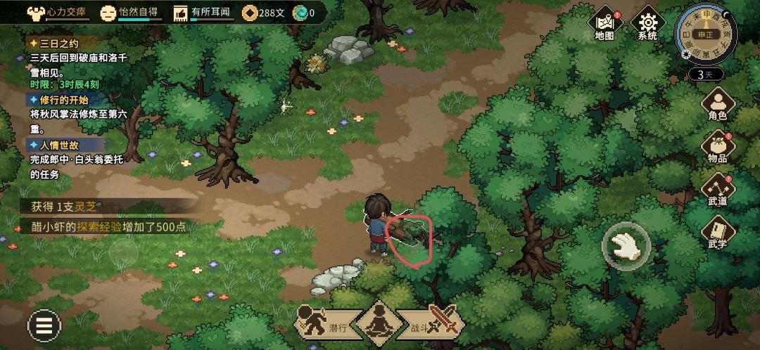 到达图中木头处,红圈位置就是灵芝(我点拾取才截的图)