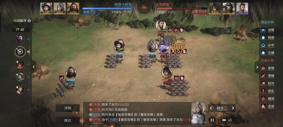 在此让我们特别鸣谢给本期文章提供创作素材的玩家朋友,他在三国谋定天下的游戏ID名为“镇西大将军”,好霸气的名字!这个叫镇西大将军的哥们所分享的战报,是用周仓、马超和张飞的组合开了8级地,只用了两个回合就击溃了守军里的华雄。剩下的徐庶和卢植,也没有能撑得更久,整盘打下来只用了三个回合。周仓是如何掩护马超和张飞的,下文将做细致的分解。