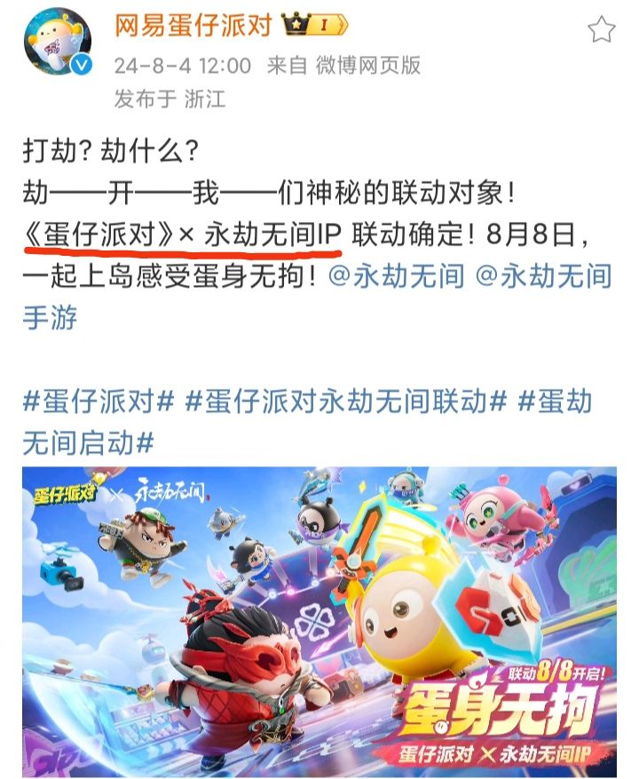 8/4号中午,《蛋仔派对》官博发文宣布:
