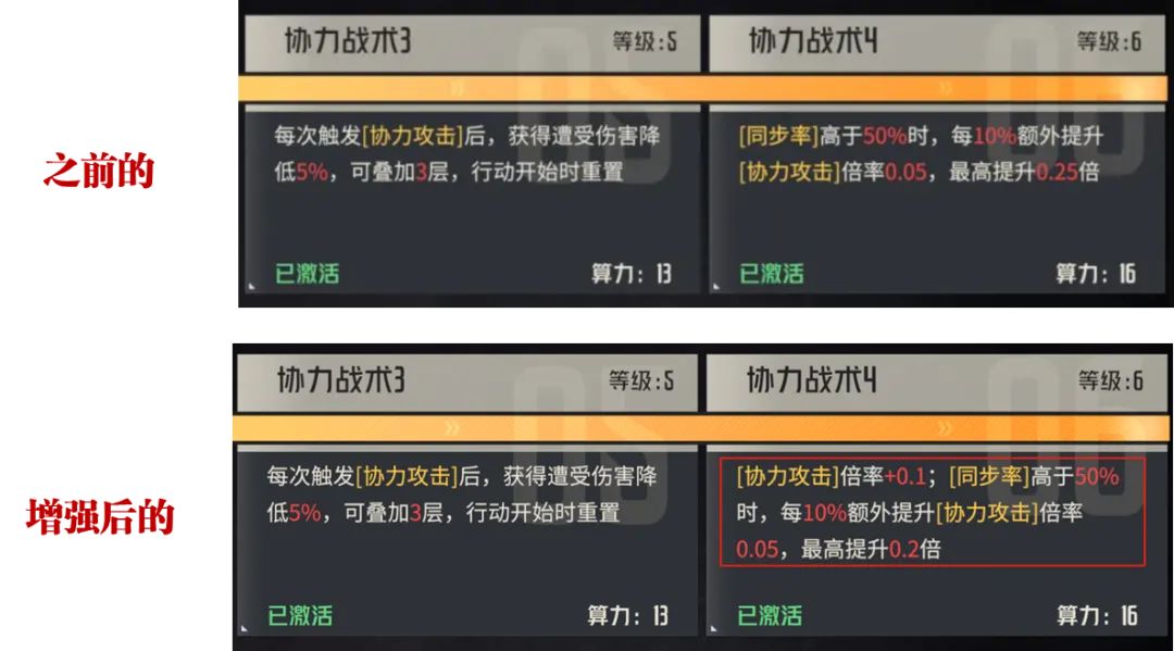 然后γ2区也做了大的调整,其中16算力针对协力攻击倍率的调整也一定程度上解决了之前由于绫波同步率很不容易积累的问题,所导致的难以享受到协力攻击倍率提升的增益,所以此次官方就直接把协力的协力的基础倍率都提升了0.1,也让绫波可以更容易享受到协力方面的输出增益。那么除了以上这些改动之外,基本上剩下的就是在属性方面做了一些调整优化: