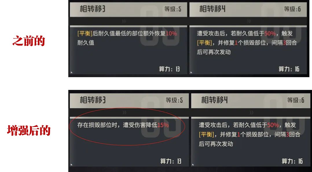 然后在γ1区的13算力方面,此次测试服也做了大幅的修改,直接把额外回复血量改为了存在损坏部位时的减伤效果,这点无疑就是为了提升绫波在没有大盾时的生存能力而设,之前绫波零的抗伤能力嘛......真心只能算一般,没有盾之后如果被激活很容易就被带走,所以这便是官方改这个点的核心原因。