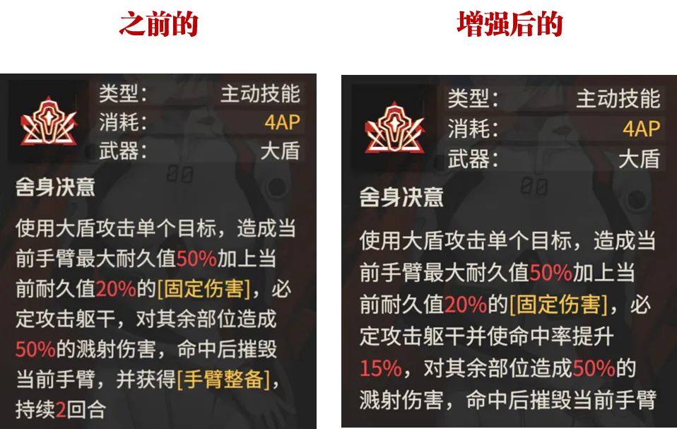 首先第一个调整的技能便是大盾的固伤输出技能,这个技能调整的点主要有2个: