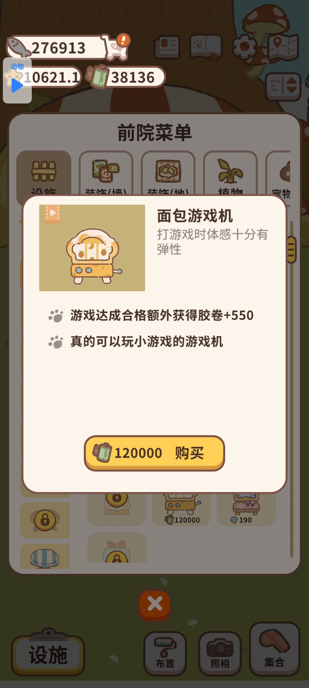 除了额外加成的胶卷,游戏机每局游戏还会随机掉落[小鱼干][胶卷][星星]三种奖励中的一种,如果掉落胶卷的话,会和你前院别的胶卷加成的装饰物有关。