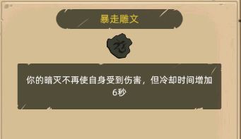 「暗灭」技能新增2个雕文“暴走”和“致命”,此处推荐点击“致命”雕文,但需要围绕该技能雕文进行属性搭配