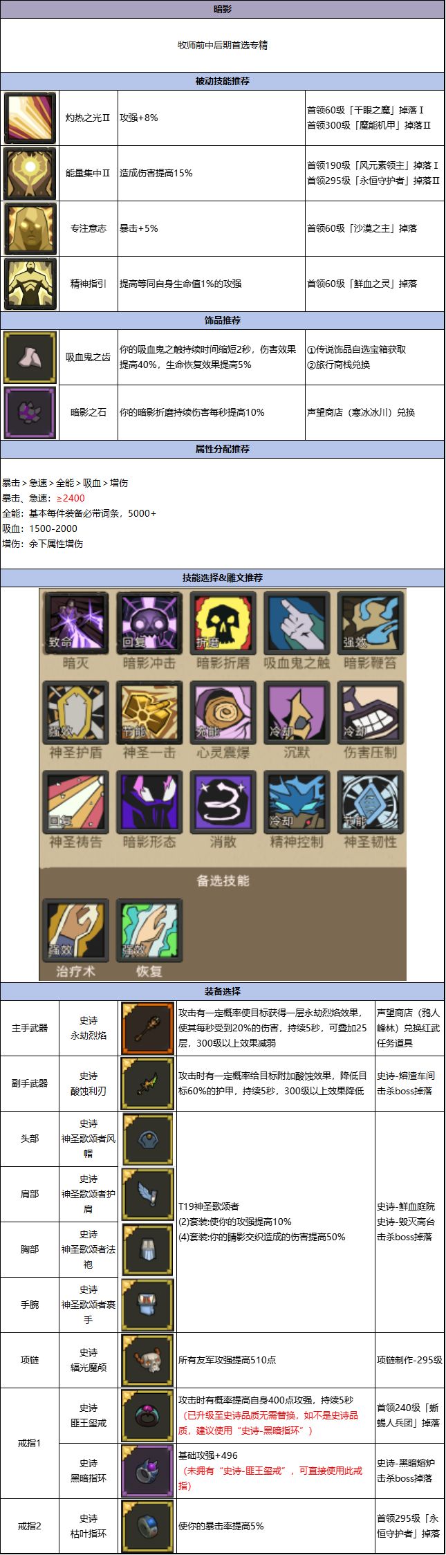 因此我们需要提升暗牧的生命恢复能力,来保障战斗过程中始终把角色血量稳定在70%以上,确保不会猝死
