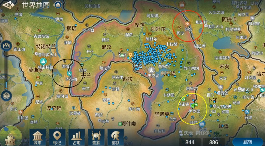 热泉,接触天空城最具优势的关口,只需要通过柯沙,卡拉赫两个五级城就可以抵达6级城西帕尔然后接触到天空城进行布防,并且铺路距离最短,不过容易和伊苏堡产生正面冲突。