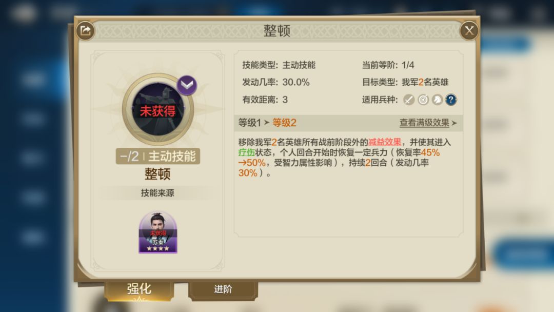 整顿能为关羽提供55%的增伤,只提供一次增益,不过它有驱散。