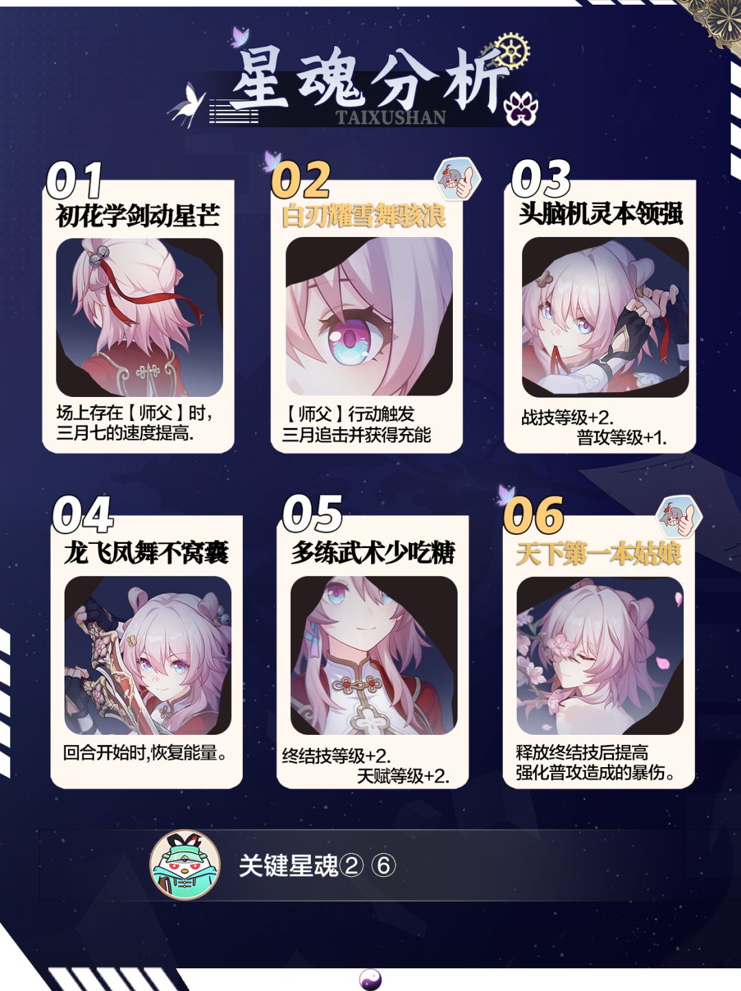 指定我方单体成为师父,根据命途的不同,提供不同的增益效果,战技效果全程覆盖,一技为师,全程为父,除非换人。