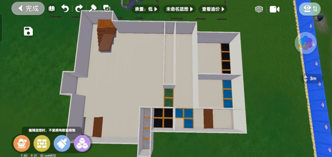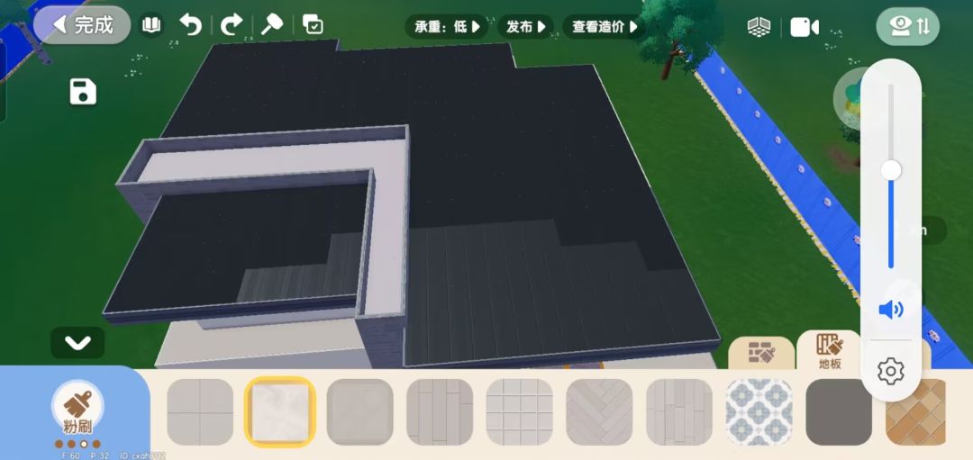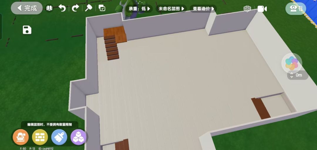给两块凸出的墙体涂色(样式1)上面围一圈矮墙(地板样式9)