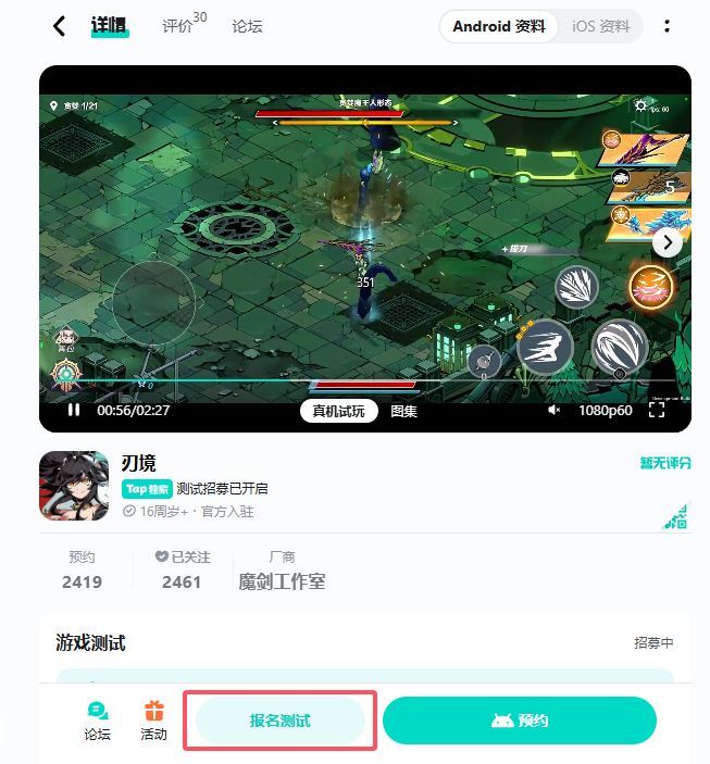 想要测试资格的小伙伴们,赶紧前往《刃境》游戏详情页填写报名问卷吧!招募时间截止到8月18日0点,激活码会在8月19日发放,手慢无哦!