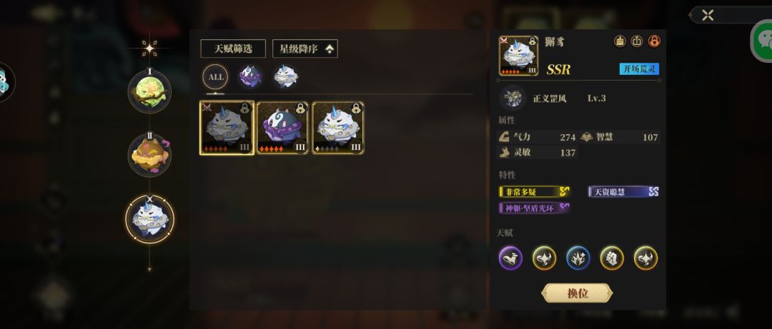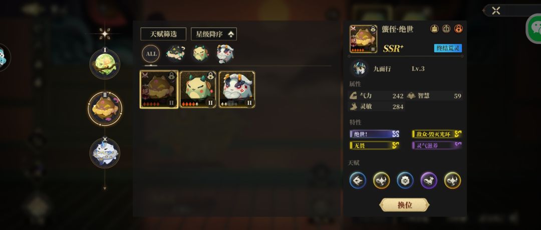 首先需要把队伍配好。也就是每个种族都选一个特性技能最好的开始培养,首先锁定。以古螈神为例,只留一个主要培养的古源神,其他的不论是ssr+还是ssr还是sr,全部放生了(由于只有天资聪慧特性的荒灵才会出随机的金色天赋,因此前期当玩家手上荒灵不多时,带天资聪慧的荒灵可以考虑保留)