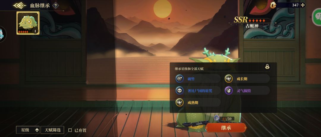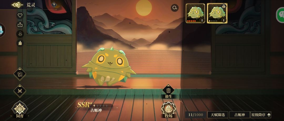放生后用这些碎片全部用来升星主力古螈神,例如我一直没有抽出来特性比较好的古螈神,就把随便一只升到满星了,之后刷到好特性的可以直接点击饲育里的血脉继承,消耗碎片进行星级和天赋的无损继承。此外需要注意的是,放生操作会返还荒灵养成时消耗升星材料的50%。