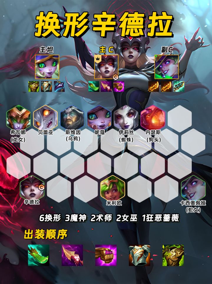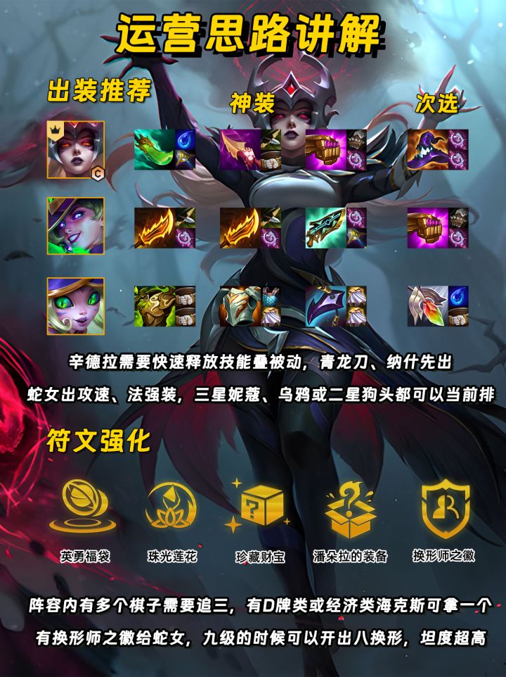 辛德拉技能自带减魔抗,优先出输出装和前排肉装⚡️