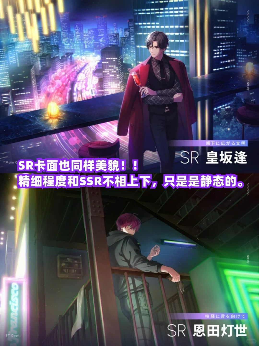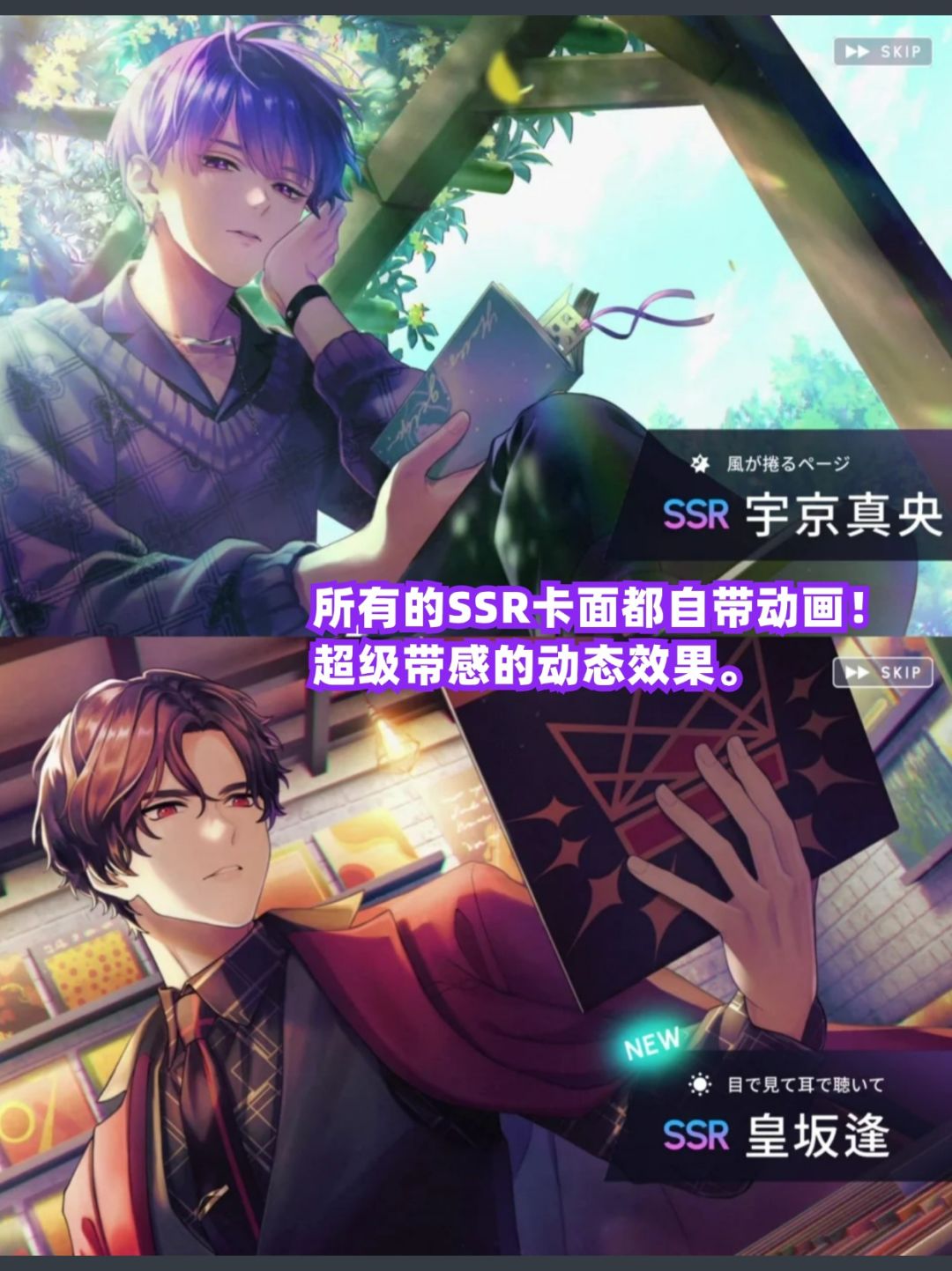 不得不提的是美术!人物立绘尤其精美,卡面更是细节满满,SSR的卡牌还添加了独特的动态效果,虽然其他等级的卡牌没有动态,但是画面的精美程度也令人感叹!通过抽卡哈可以给角色换衣服,而且角色的生日还会有特殊卡面哦!