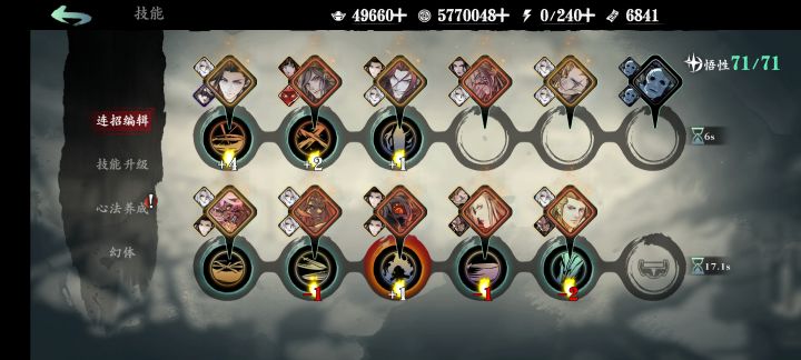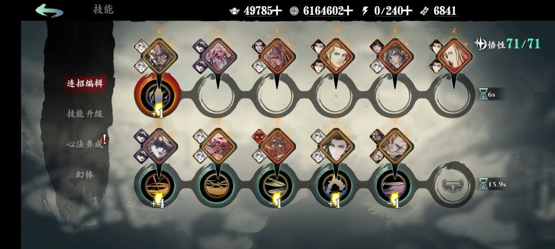 ● 后者为新团本的打团链,与【版本1.0】的链子相似,微调了两个心法位置,这里如果各位有中毒华服的话,那么可以将小蛇和守正下掉,换上绿蛋或者血屠,最后多余的技能槽放一张白色攻击卡即可,伤害会更高,但我这里没有中毒华服,就不进行测试了。