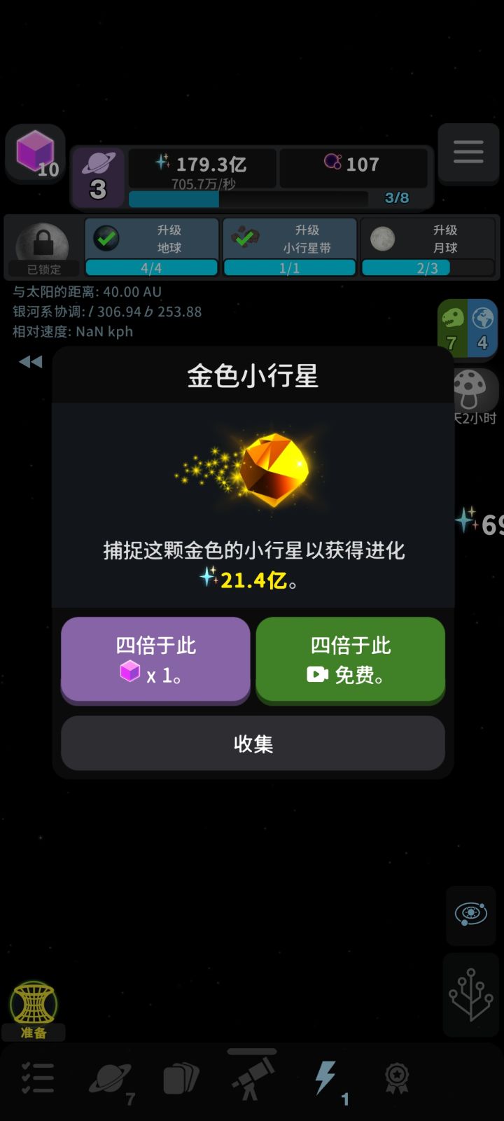 3,点击小行星收集