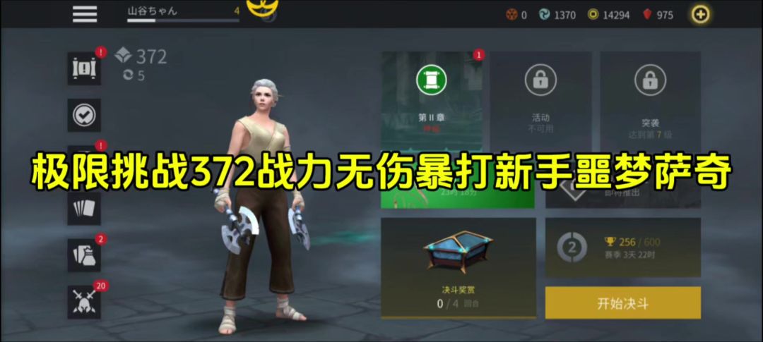 我们又来挑战老萨奇啦!毕竟打萨奇的方式总是并不嫌多嘛~这次的挑战再一次打破纪录——372战力无伤打萨奇,挑战人就是我们的老朋友精英创作人【山谷ちゃん】,相信这个战绩是凝结了山谷的心血!(#^.^#),来吧,展示!!!