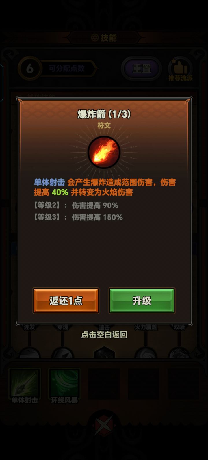 以上面两图举例,爆炸箭意思是在单体射击上再增伤40%,按照这个应该是n*1.2(单体射增伤)*1.4(爆炸箭增伤),但实测n*1.4(爆炸箭增伤),爆炸箭增伤直接取代了单体射击的增伤。结论:游戏基础技能里,二级技能增伤为实际增伤,取代了一级技能增伤