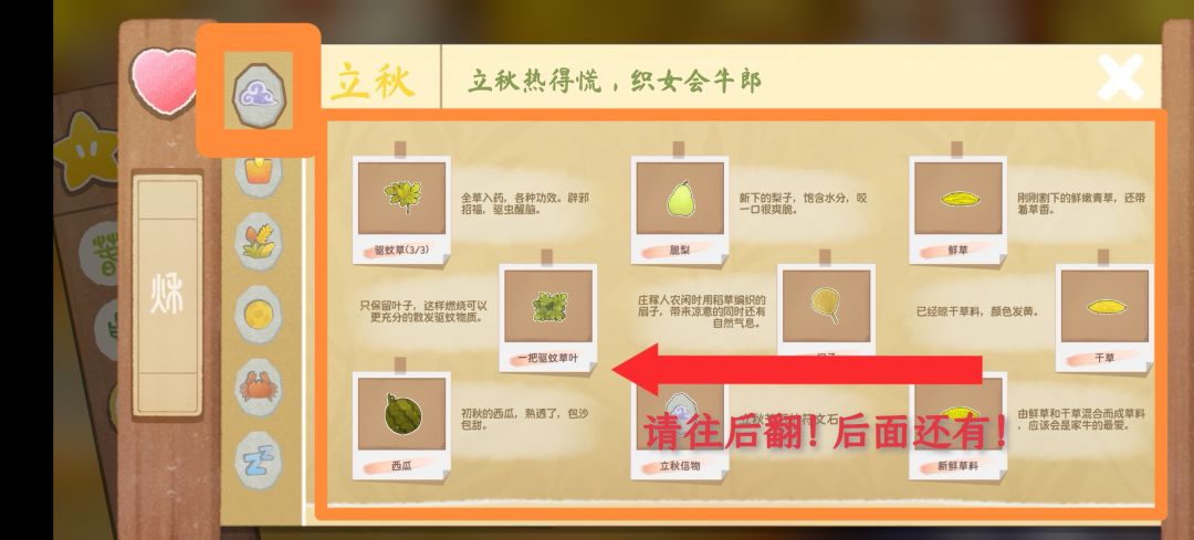 或者,直接一个季节结束后,整个季节一起查看。点图鉴最前面那个写着“春/夏/秋/冬”的大方框,然后可以看到全部图鉴,而且不用一篇一篇翻了。