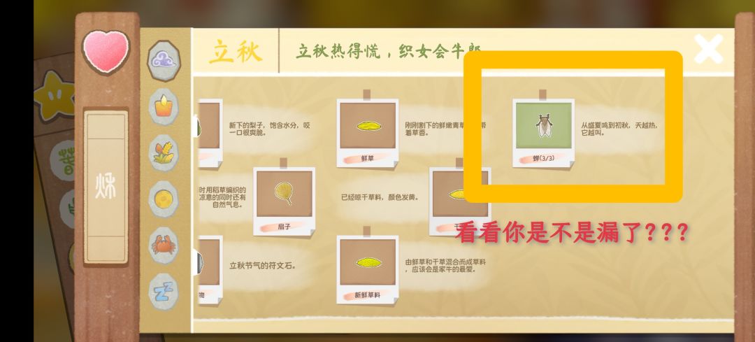 好吧,写到这里我还是重新打开游戏看了一眼有哪些季节容易漏ಠ_ಠ