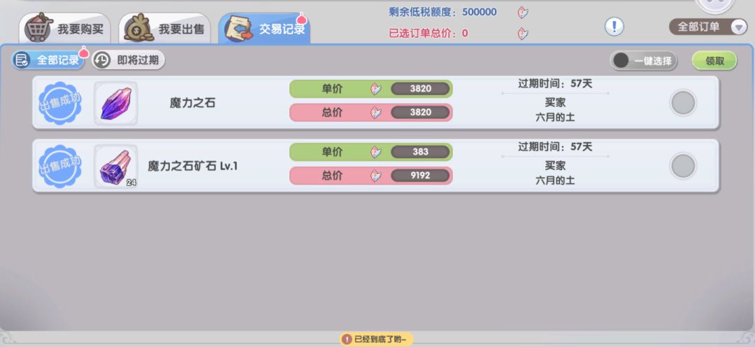 举例来说,如果本周你出售的所有东西一共就40万,那么这40万收取10%的税后,我们可以拿到手的水晶是36万。