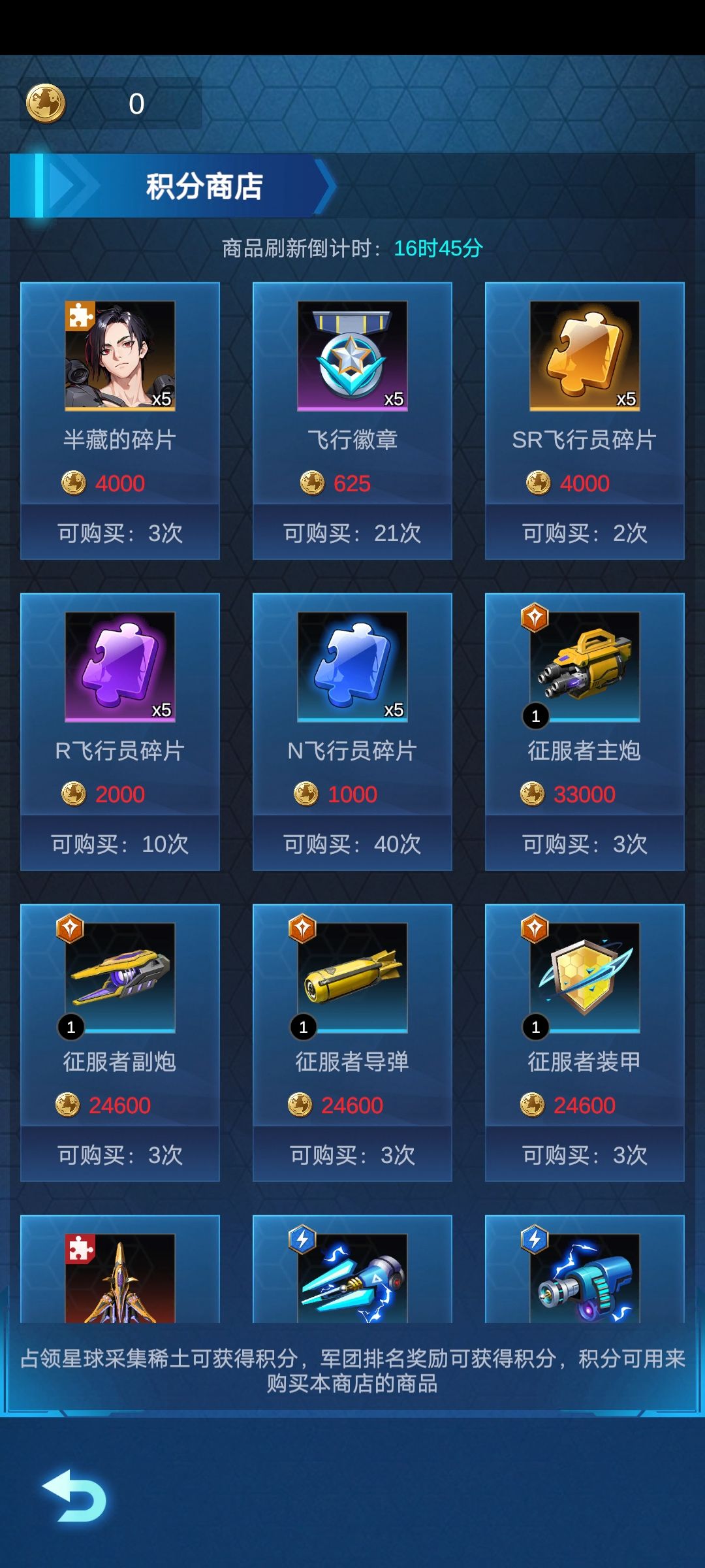 然后公会里的《星球大战》积分商店确实有征服者导弹,问题我在公会呆了几天,积分还是0。