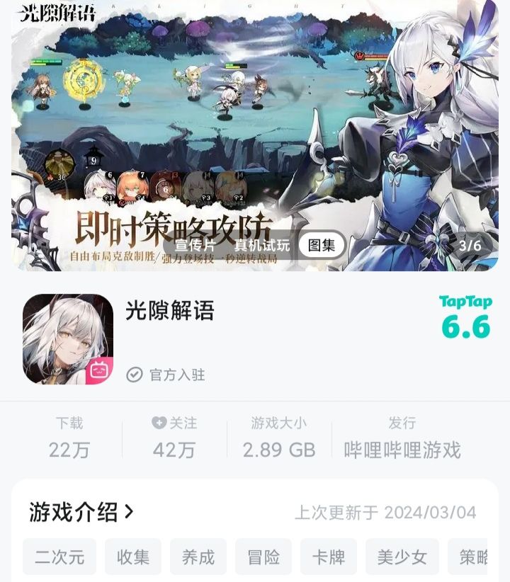 《光隙解语》是由丛云(北京)科技有限公司开发,哔哩哔哩游戏代理的二次元策略卡牌攻防游戏