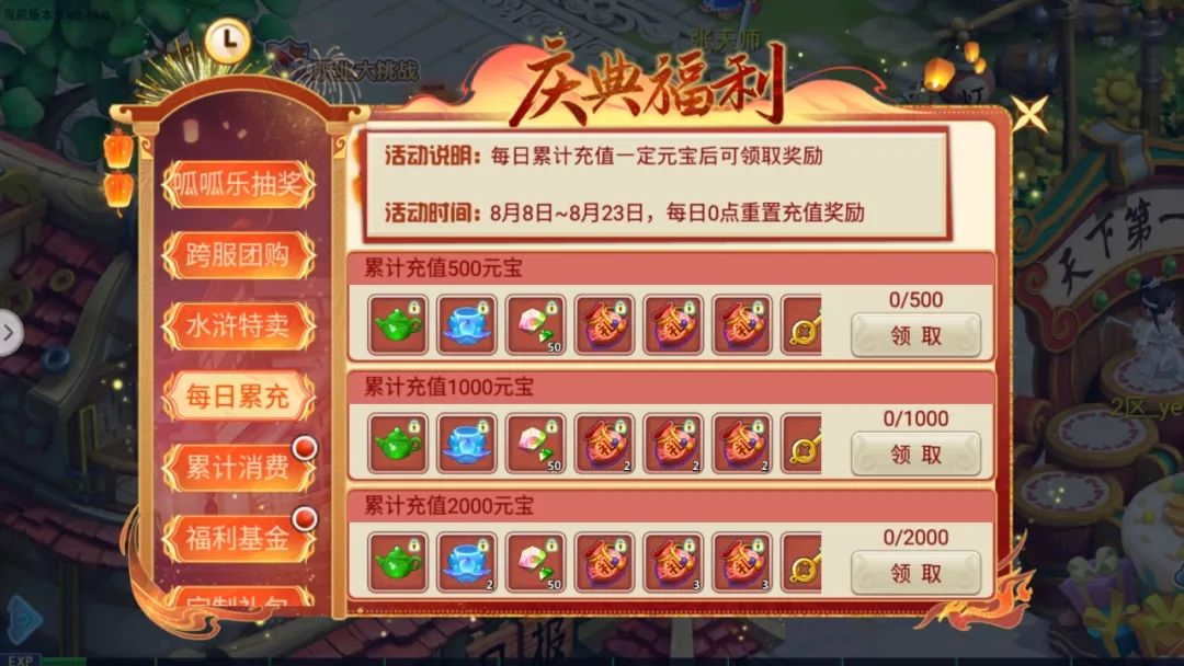 水浒神树,周年庆期间每天登录即可获取一次许愿机会,每次许愿时从其中随机获取,丰富奖励等着你哟~