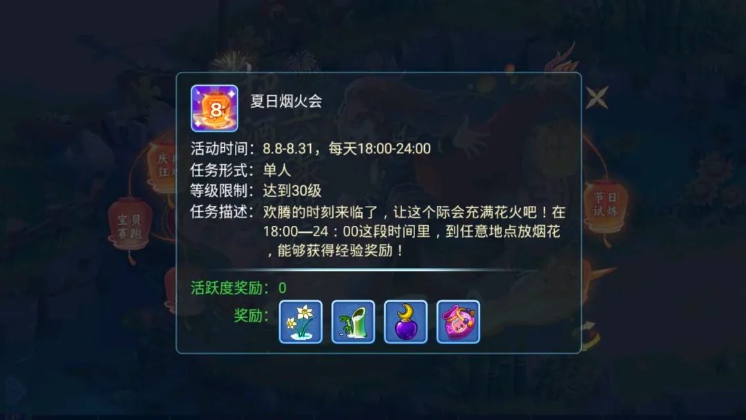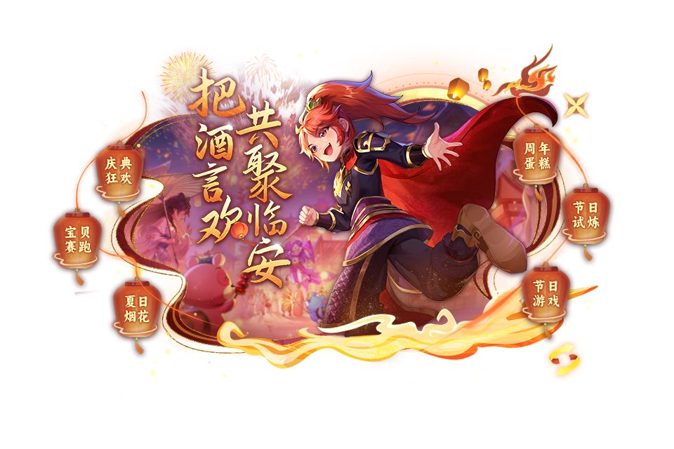 在这个庆典节日怎么没有特色烟花呢,水粉们参与日常活动即可获得周年庆烟花,在限定时间可以进行燃放,叫上好友一同观赏吧~