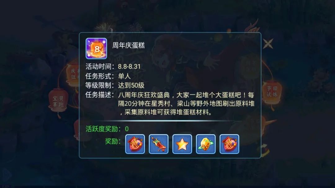 游戏内收集蛋糕材料到对应NPC进行提交,可获得丰厚道具,全服堆满一个蛋糕可获得额外的道具,水粉们行动起来吧~