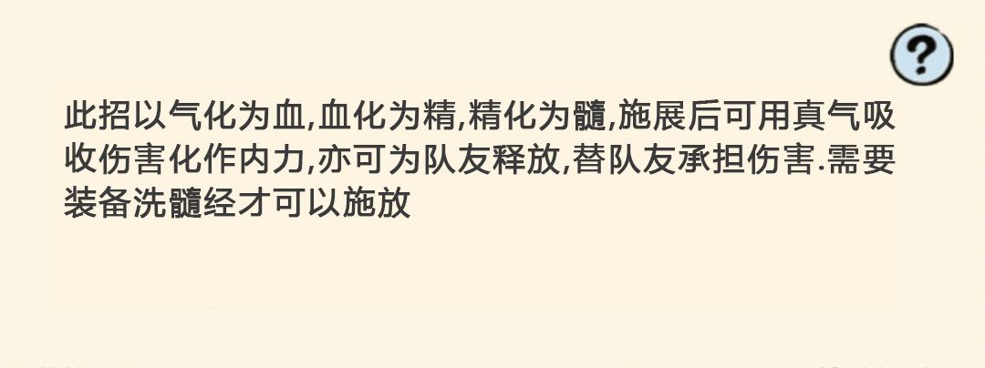 「回春」:恢复少量生命,恢复量随[洗髓经]等级提升。