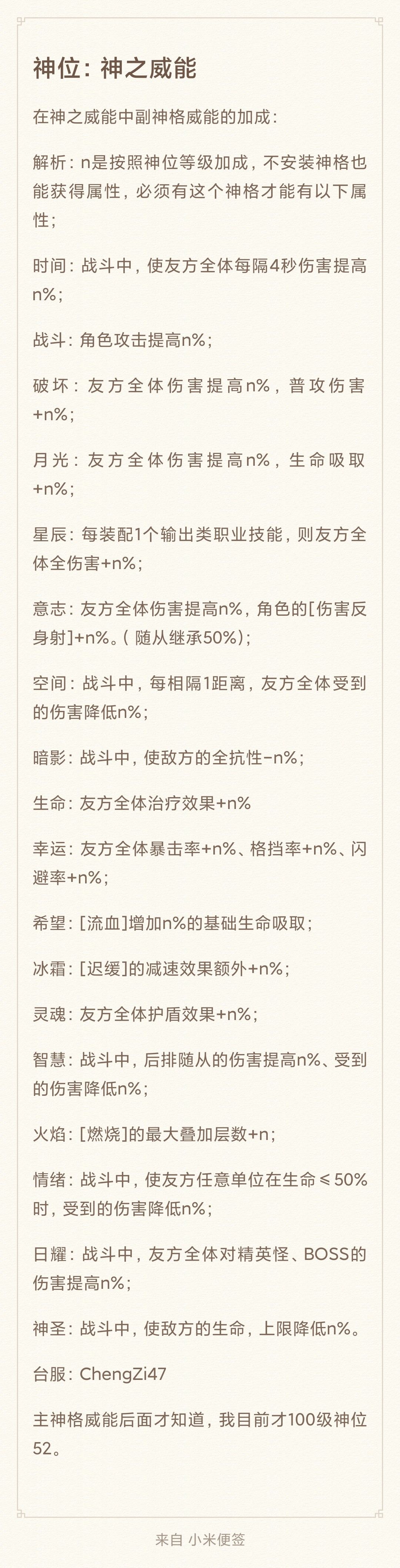 解析:n是按照神位等级加成,不安装神格也能获得属性,必须有这个神格才能有以下属性;