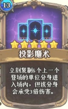 思路:投影魔术复制体可以触发战吼效果,装备此威能的随从受到伤害的为0,受被攻击次数达到上限会直接死亡,解决了投影魔术分身承受三倍伤害的副作用,对付群体伤害不行,对付单体伤害无敌,管你伤害多高