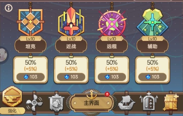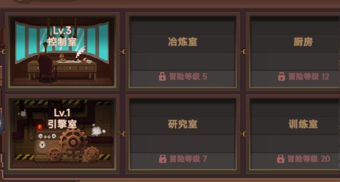 飞艇分为控制室、引擎室、冶炼室、研究室、厨房、训练室、改造室、战略室八个飞艇室,利用力量精髓可以升级飞艇,获得强大增益。